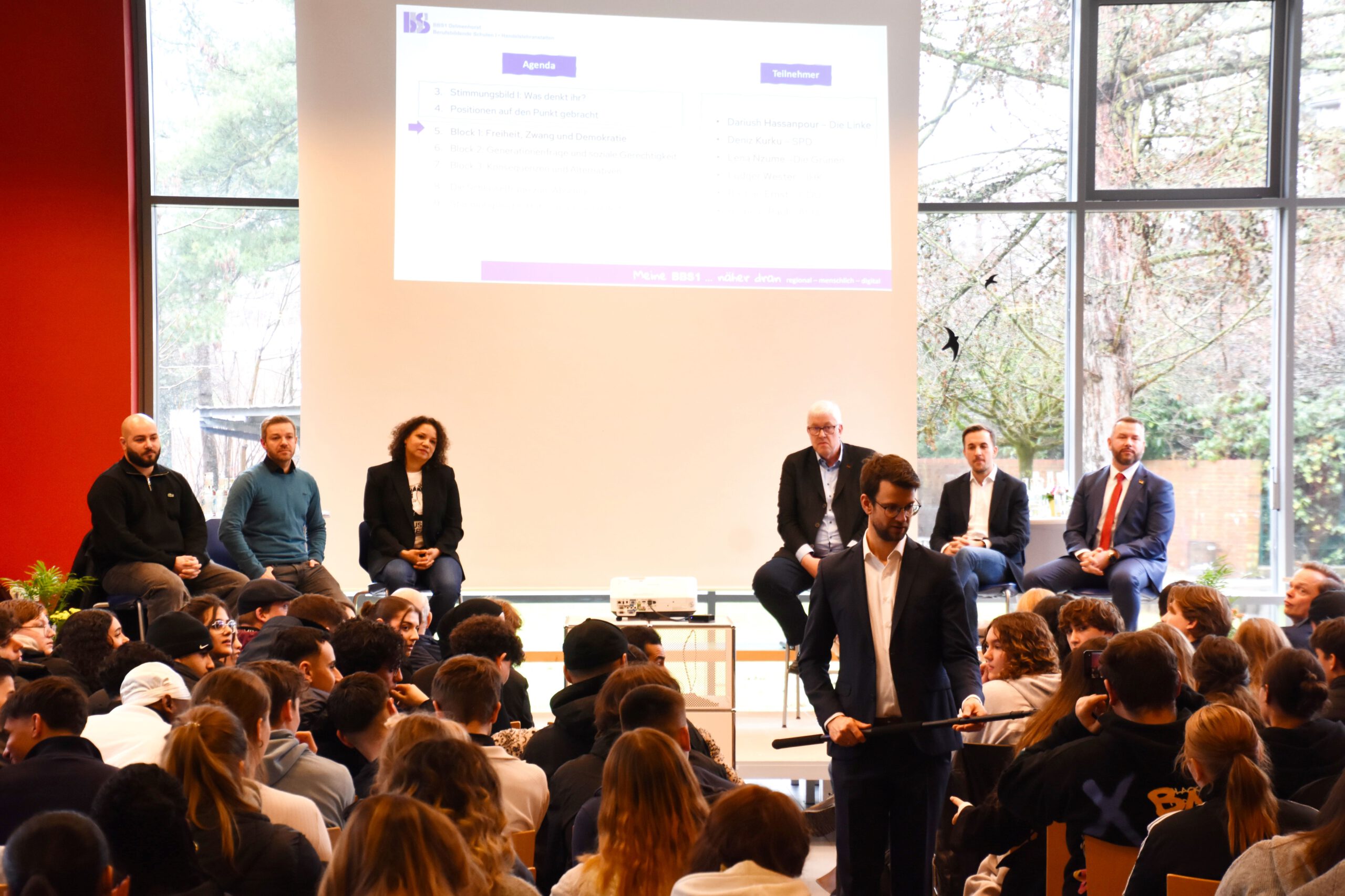 Die Diskussion, in Form einer klassischen Podiumsdiskussion, findet am Donnerstag, dem 12.02.2026, um 11:30 Uhr (5./6. Std.) in der Aula der BBS I Delmenhorst statt.